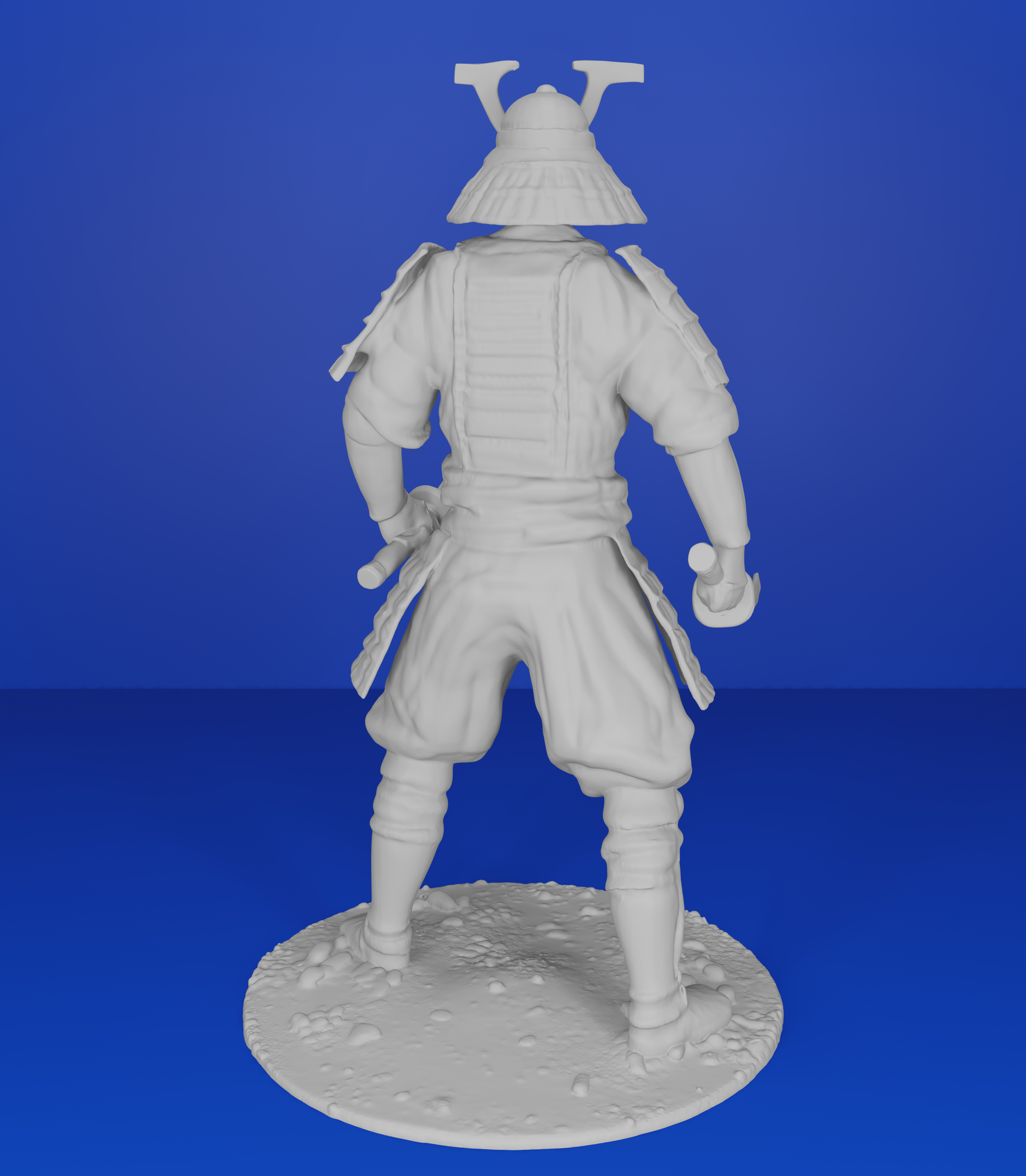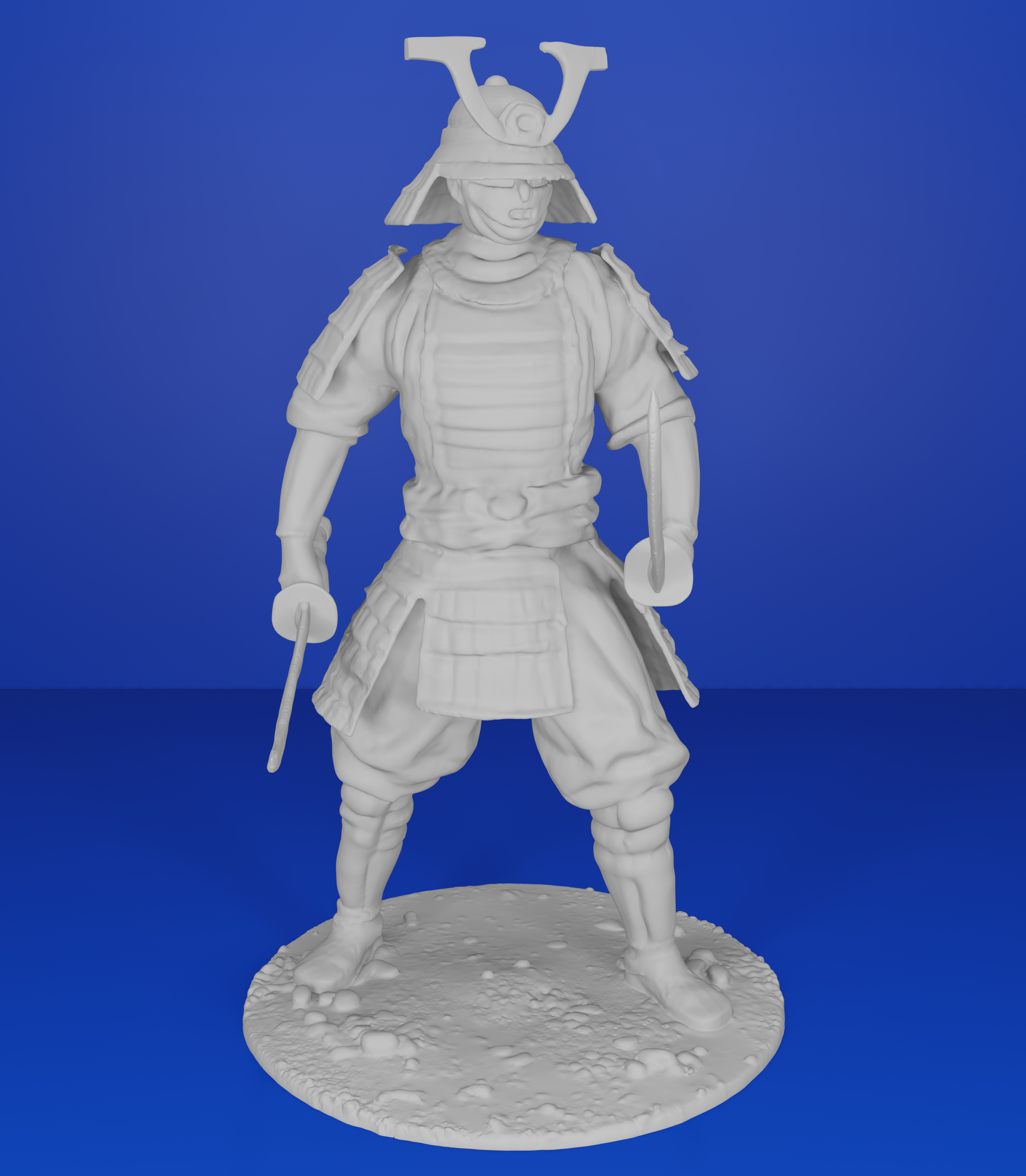 Forward stance, layered armor, and twin swords at the ready capture disciplined poise. Calm and lethal in one sculpt.