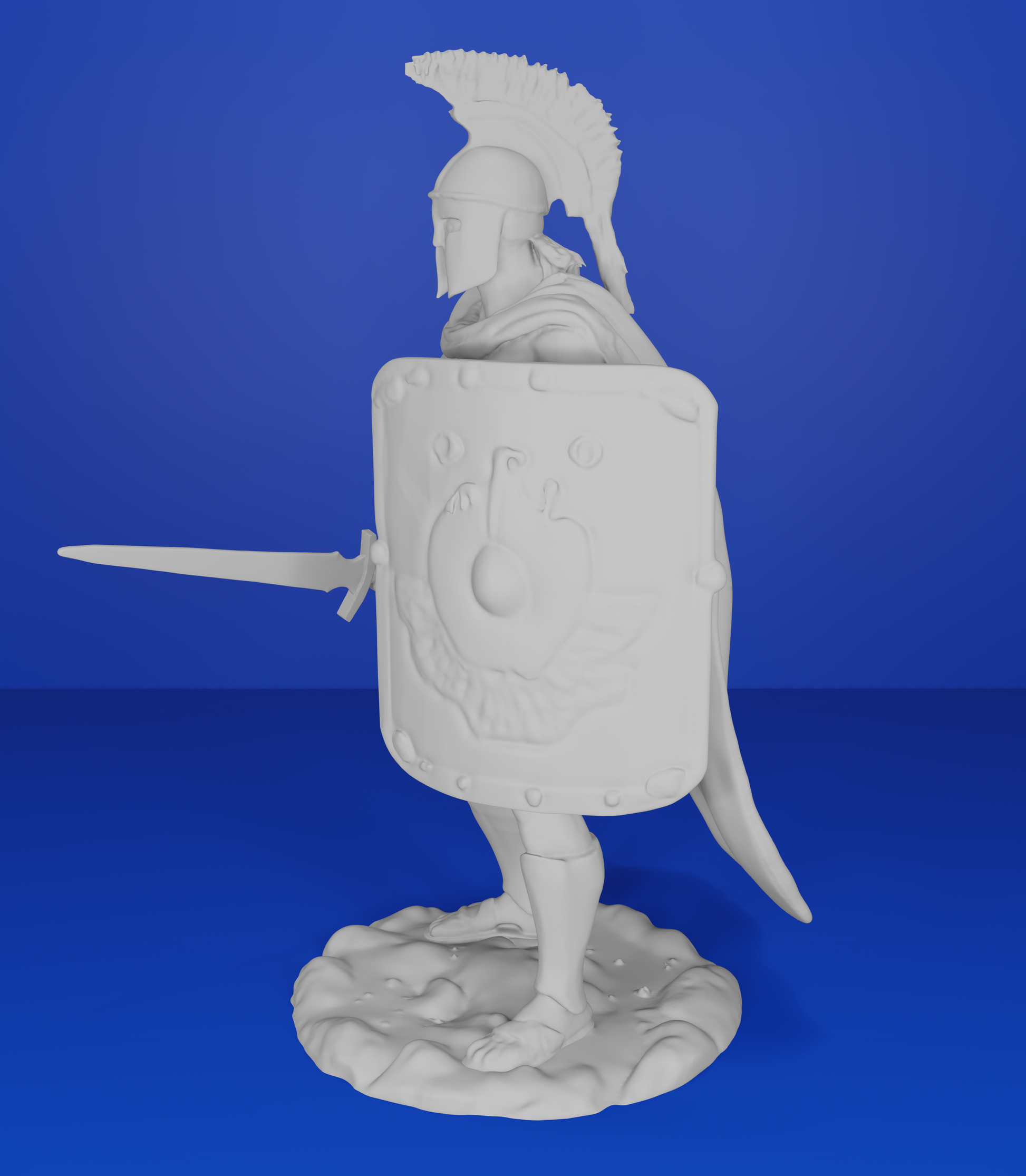 Squared stance, raised scutum, and a poised gladius capture the calm before command. Order and resolve in one sculpt.