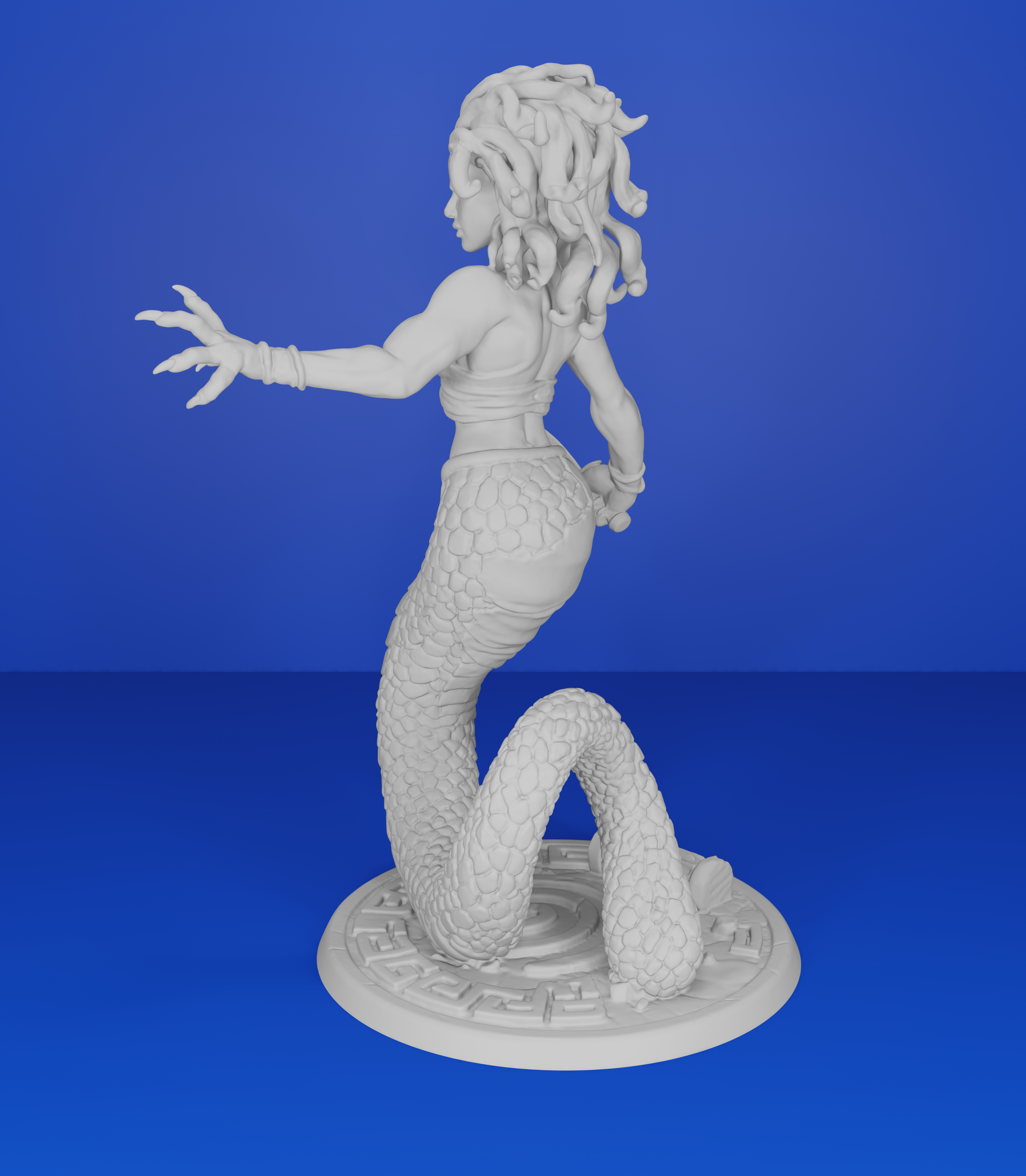 A coiled serpent-body, outstretched hand, and a poised blade capture the instant before the strike! Elegant and menacing in one sculpt.